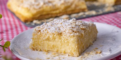 Urmăriți rețeta video pas cu pas: Ingrediente: Zahăr 250 gAmidon alimentar 90 gLapte 1 litruOuă 4 bucUnt 50 gEsență de vanilieCoaja rasă … Continue reading Cremșnit cu cremă de vanilie